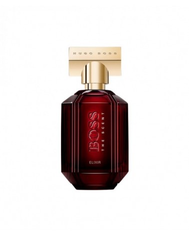 BOSS The Scent Elixir para mujer. Esta versión concentrada de BOSS The Scent for Her original es una fragancia cautivadora que combina granos de pimienta rosa intensos y la hipnótica atropa belladonna con un toque seco de ámbar.