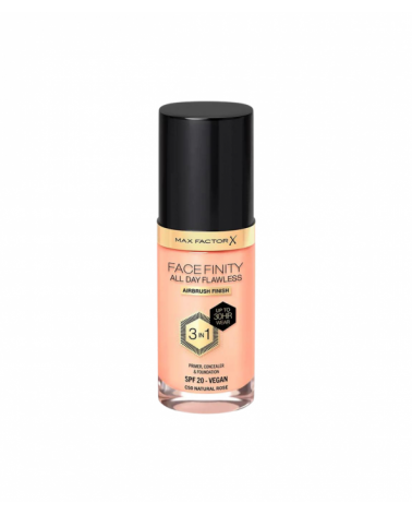 Para un acabado mate impecable y de larga duración de hasta 30 horas. Max Factor presenta la nueva base de maquillaje Facefinity 3 en 1, que combina prebase, corrector y base. Su fórmula vegana, ligera y transpirable, disimula las rojeces y cubre las imperfecciones y dando un acabado difuminado y suave. Ahora cuenta con mayor protección para la piel: resistente al agua, al calor y a la humedad. Ofrece protección SPF20 frente a los dañinos rayos UVA y UVB, así como frente a agresores externos como la luz azul y la contaminación.