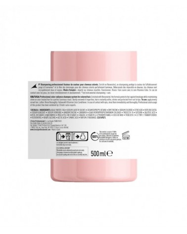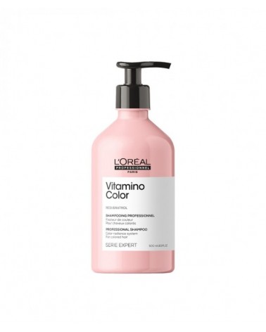 Champú Vitamino color perfeccionador del color para cabello coloreado. Lava, suaviza y purifica aportando brillo infinito y luminosidad. Un champú de sistema de luminosidad del color. Su fórmula profesional con resveratrol, potente polifenol, protege el color de la decoloración hasta 8 semanas, y la fibra de los daños para un cabello teñido perfecto en el salón. Elimina de forma suave las impurezas, dejando el cabello suave y protegido al instante. Ideal para cabello teñido. Consigue una melena con hasta 6 veces más brillo, y con un color intacto de hasta 8 semanas.