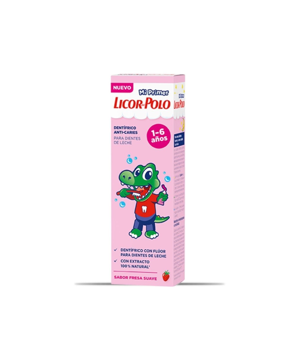 Pasta dentífrica para niños mayores de 6 años, con sabor a fresa. Enriquecido con flúor y diseñado especialmente para los niños. El esmalte de los primeros dientes permanentes es susceptible a la aparición de caries, por este motivo Licor del Polo ha diseñado una fórmula que proporcionará a los más pequeños hasta 12 horas de protección contra los ácidos nocivos del azúcar que proviene de las bebidas y de los alimentos, lo cuales son los causantes de las caries. Previene la aparición de la placa y la caries. Contiene Calcio y la cantidad de flúor exacta y recomendada por los dentistas para proteger de forma eficaz los dientes, previniendo la aparición de caries y plaza. Fortalece el esmalte dental de los dientes y mantiene las encías sanas. Su dulce sabor a fresa, hará del cepillado una experiencia agradable y divertida para los niños.