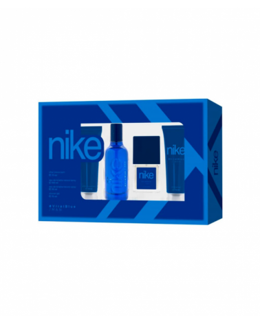 Descubre ViralBlue Man Eau de Toilette de Nike con este fabuloso Estuche Regalo. La gama entera de la ya mítica colonia. Masculina. Aromática. Inolvidable. Una fragancia cítrica, con momentos especiados del incienso y la mirra. Ideal para el joven enérgico y carismático que busca sentirse reflejado con el aroma que lleva e ir siempre perfectamente aseado. Notas de salida: bergamota, elemí, naranja y cardamomo. Notas de corazón: lavanda, incienso y mirra. Notas de fondo: vetiver, musgo y vainilla. El estuche contiene: #ViralBlue Man Eau de Toilette 100ml #ViralBlue Man Eau de Toilette 30ml #ViralBlue Man After Shave 75ml #ViralBlue Man Gel de Ducha 75ml