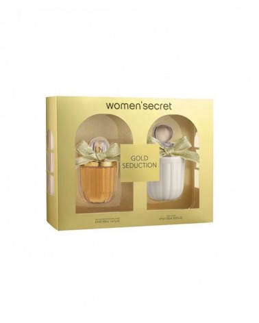 Una auténtica tentación para los sentidos. Déjate seducir por este increíble y dulce perfume, que combina su aroma femenino con una nota superior fresca y deliciosa afrutada en torno a los cítricos y frutos rojos. El estuche de mujer Gold Seduction de Women's Secret contiene: Gold Seduction + Loción corporal con el mismo aroma. Importante: -Existen distintos modelos de este estuche, por lo que es posible que el que recibas no corresponda con el de la foto. -Los productos principales que contienen continúan siendo los mismos. (Los accesorios, muestras y/o minitallas extras pueden ser distintos a los de la foto).