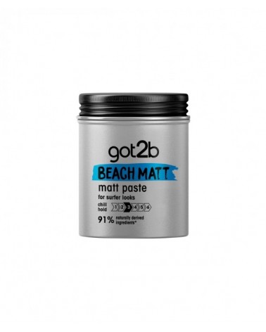 Cera Efecto Mate Beach Matt de Got2B : ¡para estilos surferos desenfrenados! Crea peinados de surfistas texturizados y mates con fijación media, ya sean despeinados, desalineados, domados o lisos. La fórmula contiene un 91% de ingredientes de origen natural* y el envase es reciclable.**