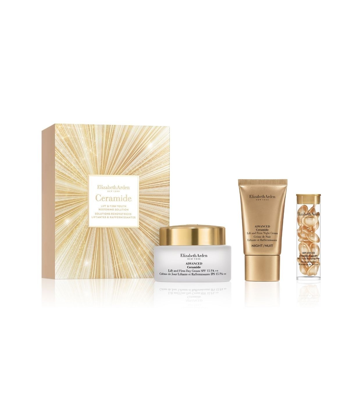 Este set incluye: Advanced Ceramide Lift & Firm Day Cream cream 50 ml. Advanced Ceramide Lift & Firm Night Cream 15ml. Advanced Ceramide Day Youth Restoring Sérum 14 cápsulas. Set con el Nuevo Tratamiento Advanced Ceramide Lift & Firm Day Cream 50ml Combinado con el Advanced Ceramide Lift & Firm Night Cream 15ml. Reafirmante: Alisador de Arrugas con Ceramidas en textura Crema Clásica. Una fórmula hidratante y concentrada en ingredientes restauradores para una piel más firme, lisa y esculpida. Refuerza la barrera cutánea proporcionando una piel fortalecida y profundamente hidratada, de la mañana a la noche. Alisa las líneas de expresión y las arrugas. Reafirma y remodela el contorno facial. Proporciona una piel visiblemente bella y de aspecto más joven. Y finalmente, el Advanced Ceramide Day Youth Restoring Serum 14 cápsulas, sus principales beneficios son: Atenúa la apariencia de líneas de expresión y arrugas. Estimula el nivel natural de colágeno de la piel, que recupera su firmeza. Mejora visiblemente la luminosidad de la tez. Mejora la textura de la tez y devuelve vitalidad a la piel, que se ve más lisa, suave y radiante de salud. Refuerza la barrera de hidratación protectora natural de la piel y mantiene su nivel de hidratación. Importante: Existen distintos modelos de este estuche, por lo que es posible que el que recibas no corresponda con el de la foto. -Los productos principales que contienen continúan siendo los mismos. (Los accesorios, muestras y/o minitallas extras pueden ser distintos a los de la foto).