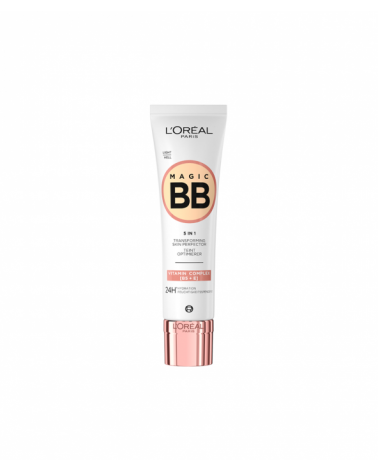 Base de maquillaje Magic BB Cream 5 en 1: Hidrata, protege e ilumina la piel al instante y unifica y suaviza el tono en dos semanas, de cobertura ideal ultraligera, no grasa, se absorbe perfectamente y sin efecto máscara, poder antioxidante y protección contra los rayos U.V.A. ya que contiene SPF 11. La primera BB cream de L'oreal que se transforma en maquillaje al contacto con la piel. Fórmula enriquecida con vitaminas E y B5 para una piel de aspecto más saludable en 2 semanas*. Consigue una piel unificada e hidratada.