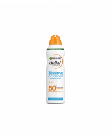 Garnier Delial Bruma Solar Protectora Senstive Advanced con Ceramidas. Muy alta protección contra los rayos UVB, UVA, y UVA largos, previniendo instantáneamente quemaduras solares y daños a largo plazo en la piel. Formulada con tecnología Ceramide Protect que mantiene la piel hidratada y la función barrera de la piel intacta. 0% pegajoso, 0% graso.