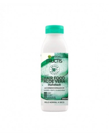 Acondicionador Hair Food Aloe Vera de Fructis. Un acondicionador de aclarado rápido que nutre de forma intensa el cabello, desenredándolo y lo repara de todo tipo de daños hasta las puntas. El acondicionador de Papaya contiene aceites vegetales y extracto de papaya de Brasil, ideal para tratar y reparar el cabello dañado. Los Acondicionadores Hair Food son ligeros y eficaces, Con ingredientes hasta 98% de origen natural, de fórmula vegana y sin siliconas para una sensación más natural. Testado dermatológicamente, sin colorantes. Ligero Prueba toda la línea Hair Food de Fructis.
