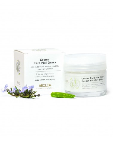 Crema facial de día especialmente indicada para pieles grasas, con acné o puntos negros. Posee una alta capacidad regeneradora y limpiadora, proveniente del aloe vera, el romero y el tomillo. Limpia el poro y reduce los depósitos de grasa. Los efectos de la jojoba y el aloe consiguen una piel equilibrada, lisa, suave y libre de impurezas.
